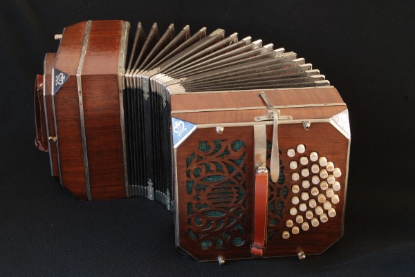 Alfred Arnold, ein sogenanntes Bourdon-Bandoneon; in der rechte Hand ist neben der übliche Oktave noch eine tiefere Oktave zugefügt so daß das Instrument im Bandoneon-Orchester die Rolle des Violoncellos ausüben konnte. Die tiefere Oktave ist zur Zeit still gelegt, (kann aber mühelos wieder eingesetzt werden) und das Bandoneon klinkt wie ein 'normales' AA.
