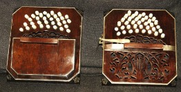 In meiner Werkstatt restauriere ich Holz und Lack mit den ursprünglichen Materialen und bringe den Instrumenten ihren vollen Glanz zurück. Palisander-Furnier wird restauriert, Lack neu aufgebracht und poliert, fehlende Perlmuttintarsien neu eingelegt. Der Zweck dabei ist nicht ein 'neues' Bandoneon herzustellen, sondern ein schönes altes Instrument zu voller Geltung kommen zu lassen.